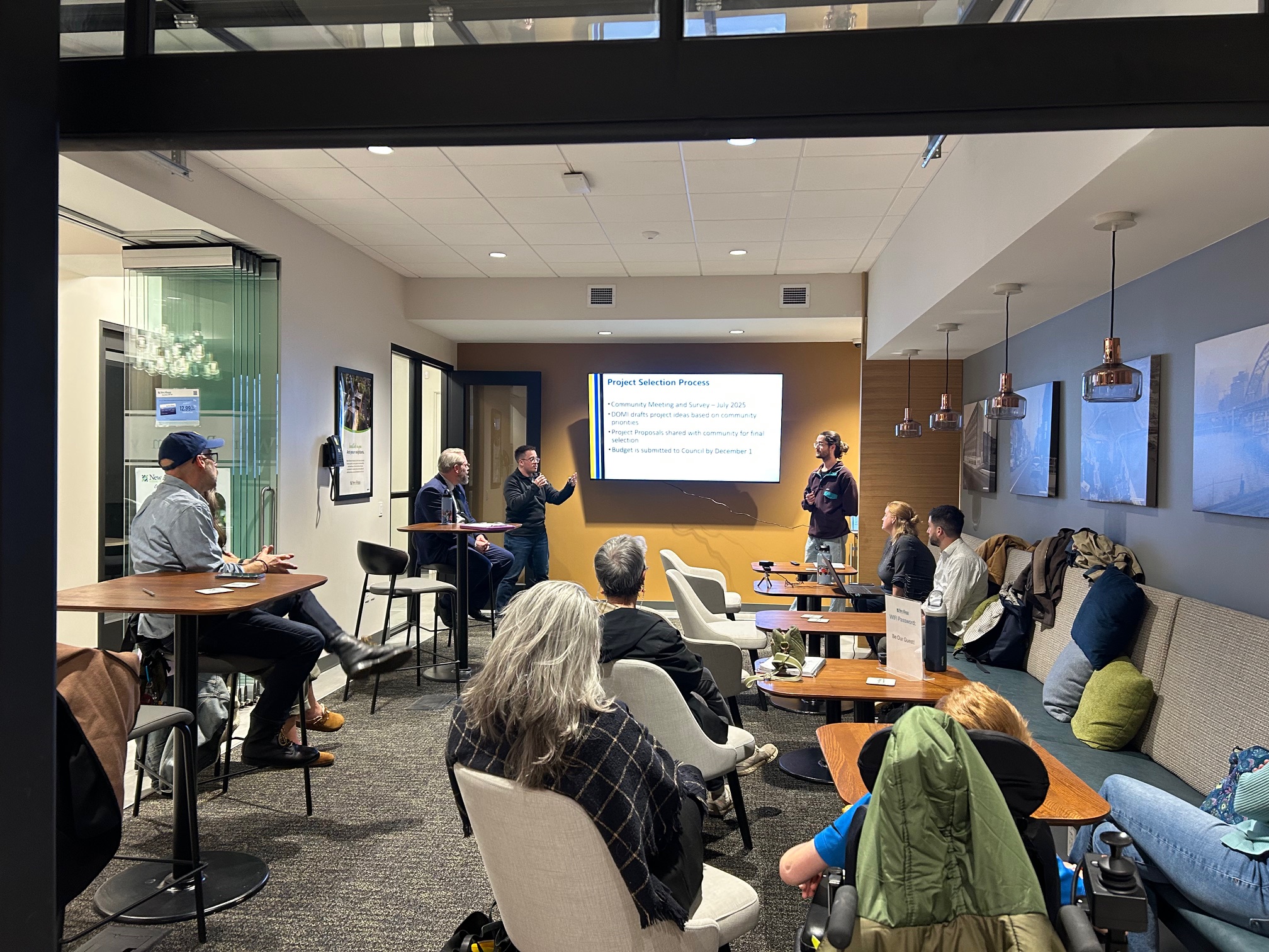The November Lawrenceville Happenings on the capital budget and proposed Mobility Enhancement District projects was held at New Alliance Federal Credit Union (3709 Butler St) at 6:30 PM. The Deputy Mayor Jake Pawlak presented on the capital budget for 2026, and the Department of Mobility & Infrastructure presented on 5 proposed mobility projects that will utilize MED funding.